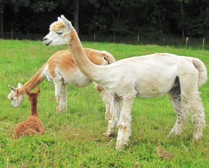 Palm-Olive and her mum Molly (with Portamento, her male cria) are for sale, to be honest I'm surprised Palm-Olive hasn't been snapped up as she has an impressive pedigree and a fantastic fleece which was admired when it went off for processing.