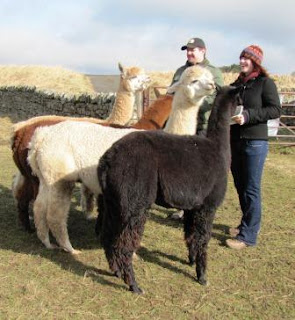 We have had an exceptionally busy day today, this morning we had a farm walk and talk booked. The weather was great as were the visitors. The alpacas always enjoy having visitors, here we have Gabby, Ursula, Oonagh and Geena being fed by Sian and Darren.